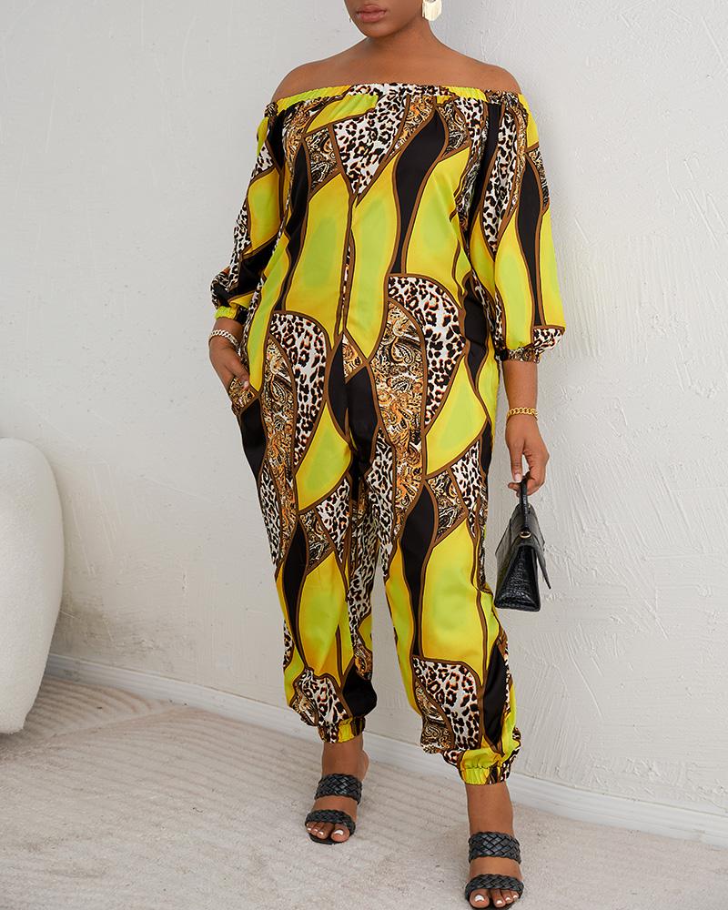 Plus Size Baroque Leopard Print Off Shoulder Jumpsuit