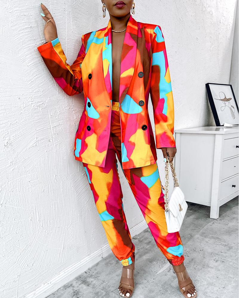 Abstract Print Long Sleeve Blazer & Pants Set
