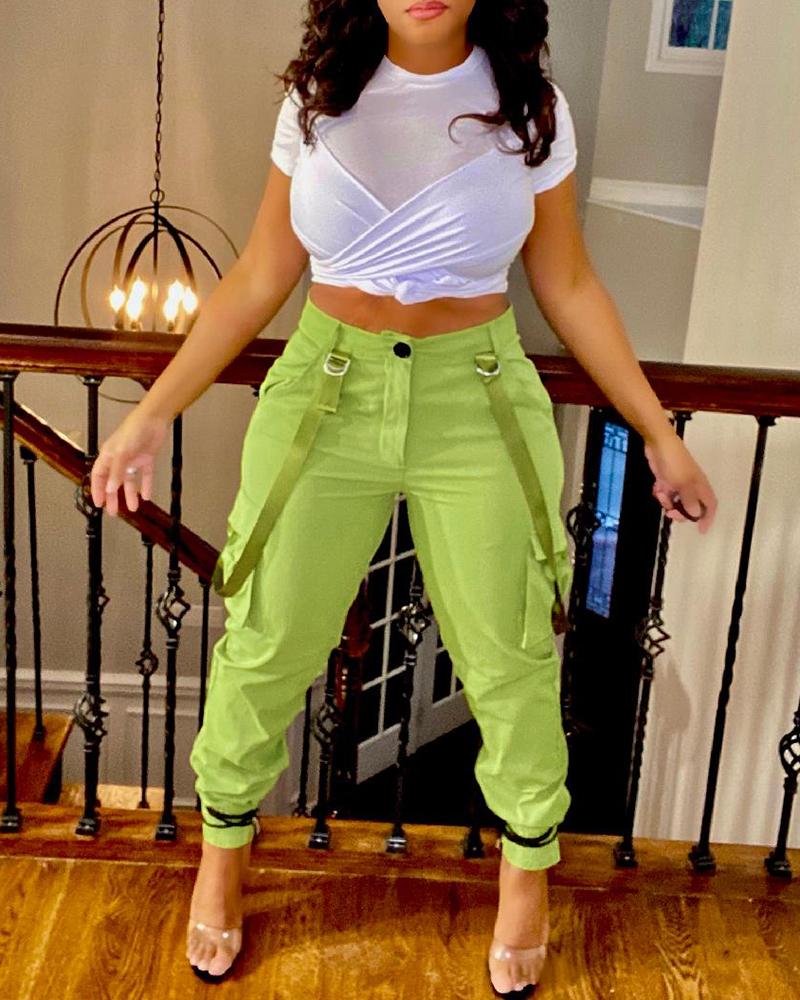 High Waist Pocket Design Work Pants