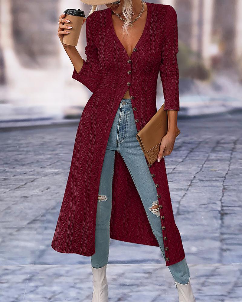 Buttoned Cable Textured Longline Top