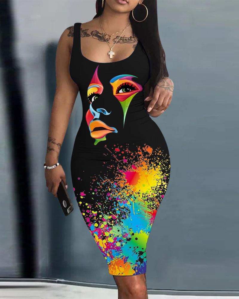 Figure Ink Splash Print Sleeveless Bodycon Dress
