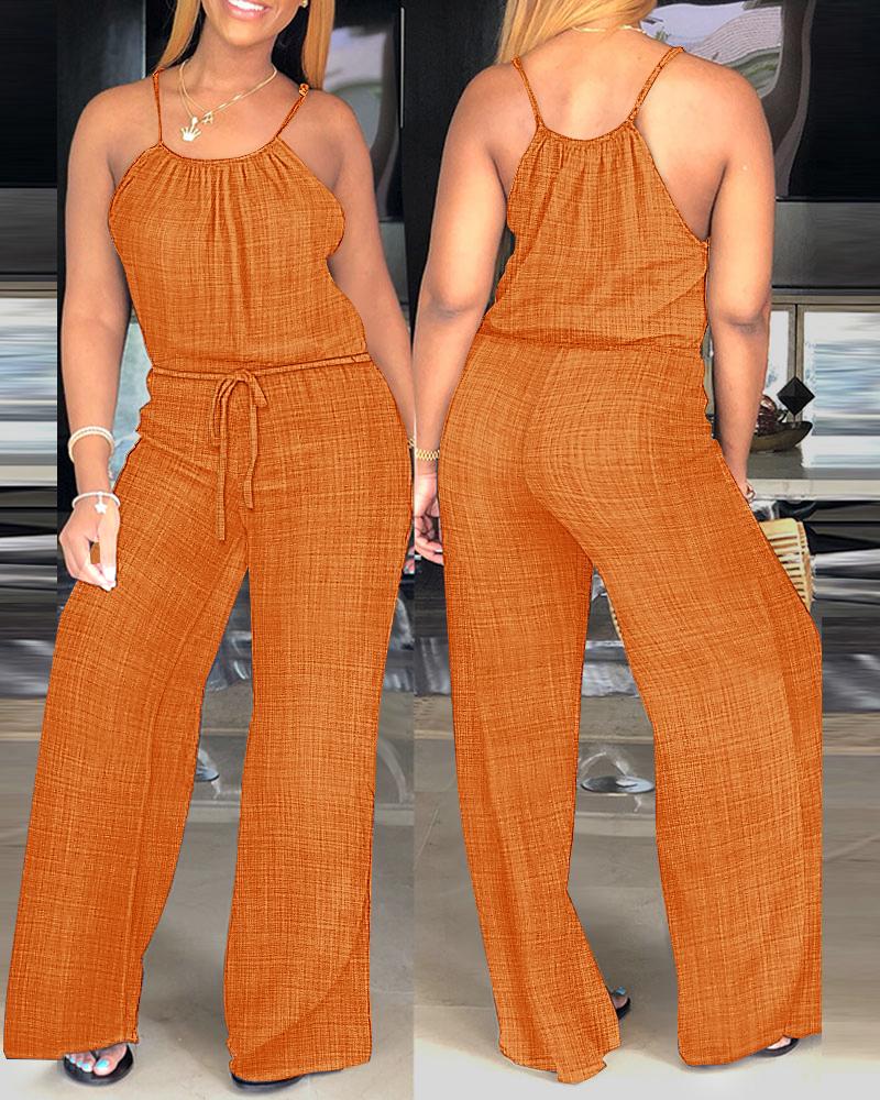 Spaghetti Strap Drawstring Casual Jumpsuit