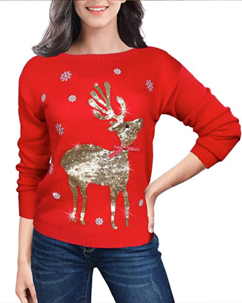 Christmas Snowflake Elk Pattern Long Sleeve Knit Sweater