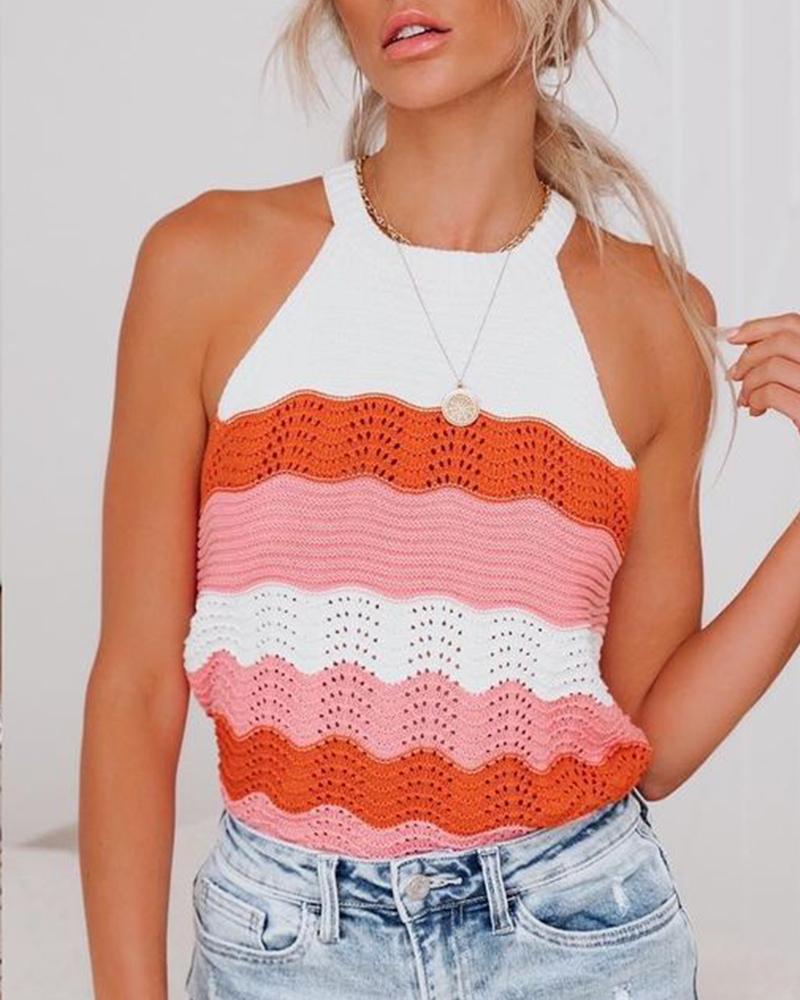 Style:Casual,Chic Type:Tank Material:Ribbed Neckline:Halter Sleeve Style:Sleeveless Length:Regular Pattern Type:Colorblock Decoration:Others Fit Type:Regular With Belt:No Occasion:Daily Package Include:1*Top Fabric Elasticity:Slight Stretch Sheer:No Care Instructions:Hand wash or dry clean
