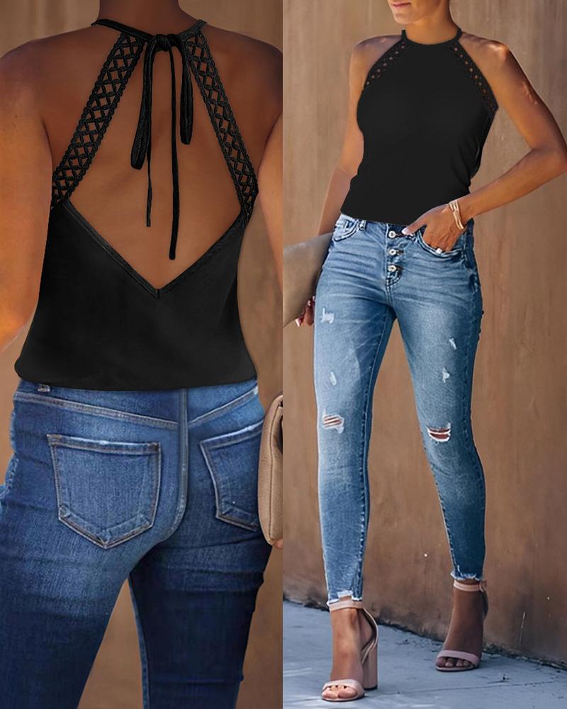Decoration:Backless,Contrast Lace,Tied Detail