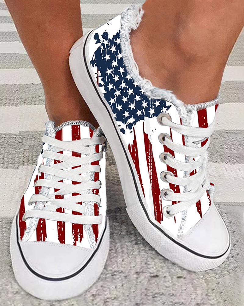Independence Day Flag Print Raw Hem Sneakers