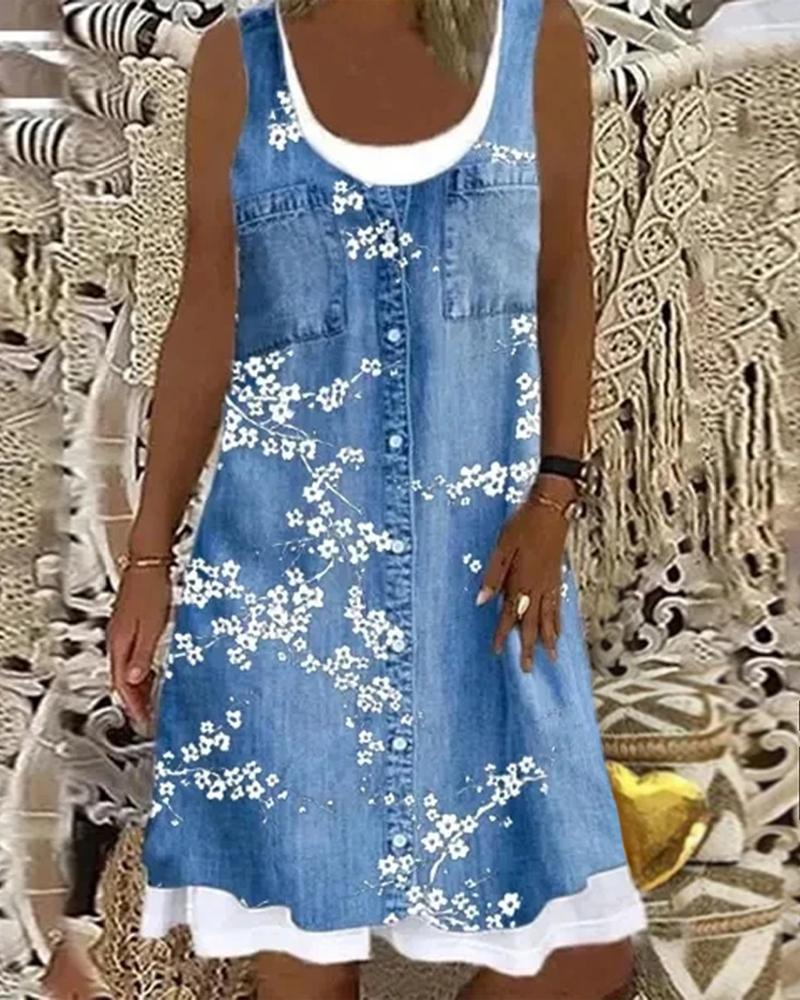 Floral Print Patchwork Casual Tank Dress