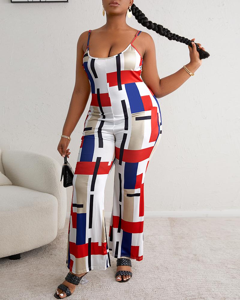 Plus Size Geometric Print U-Neck Spaghetti Strap Jumpsuit