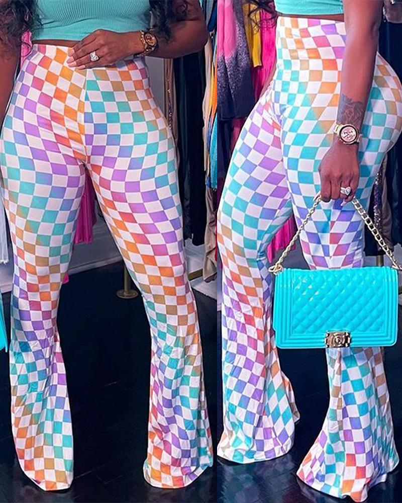 Style:Casual,Chic Type:Flared Material:Polyester Length:Long Pattern Type:Ombre,Plaid Decoration:Others Fit Type:Skinny Occasion:Daily Package Include:1* Pants Fabric Elasticity:Slight Stretch Sheer:No Care Instructions:Machine wash or professional dry clean Waist Line:High Waist