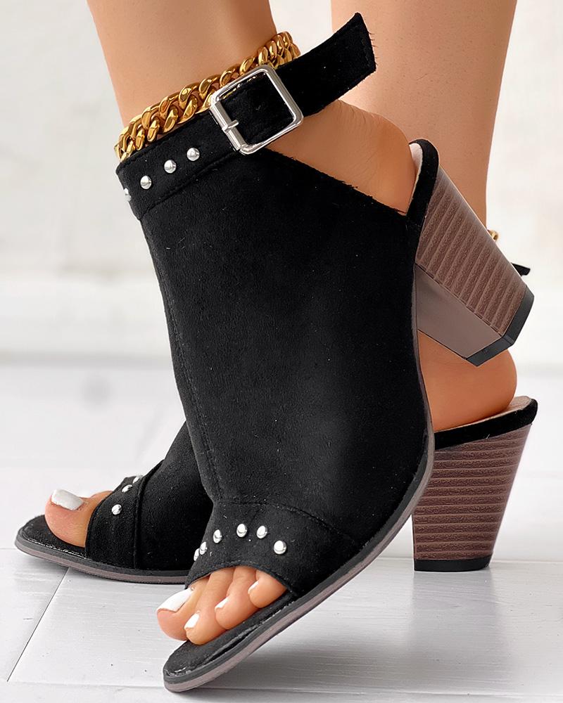 Style:Chic Type:Chunky,Heeled-Sandals Pattern Type:Plain Occasion:Daily Toe:Peep Toe Heel Height:High Heel Package Include:1*Chunky Closure:Buckle