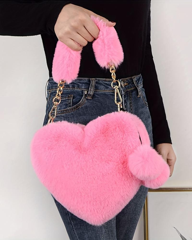 Fluffy Heart Shaped Pom Pom Chain Strap Handbag