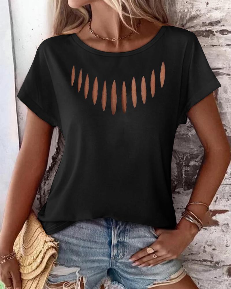 Ladder Cutout Round Neck Casual T-shirt