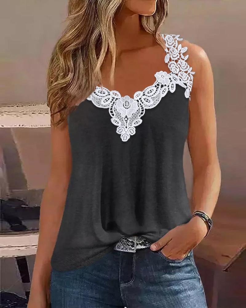 Style:Casual,Chic Type:Tank Material:Polyester Neckline:V-Neck Sleeve Style:Sleeveless Length:Regular Pattern Type:Contrast Paneled Decoration:Contrast Lace Fit Type:Regular Occasion:Daily Package Include:1*Top Fabric Elasticity:Slight Stretch Sheer:No Care Instructions:Machine wash or professional dry clean