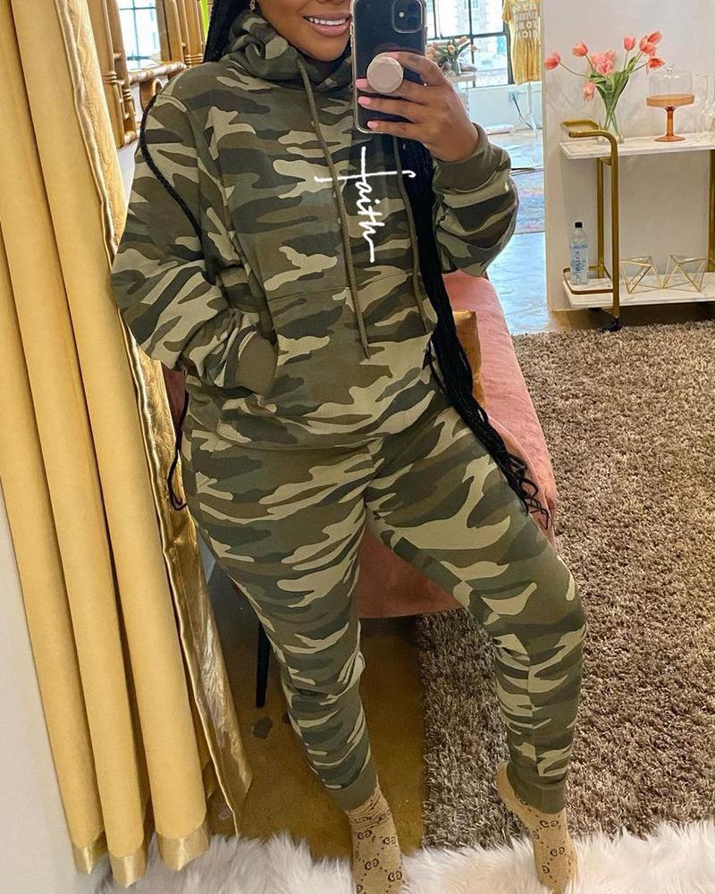 Style:Casual Type:Pants Sets Material:Polyester Neckline:Hooded Sleeve Style:Long Sleeve Length:Long Pattern Type:Camouflage Decoration:Pocket Fit Type:Regular Occasion:Daily Package Include:Pants Sets