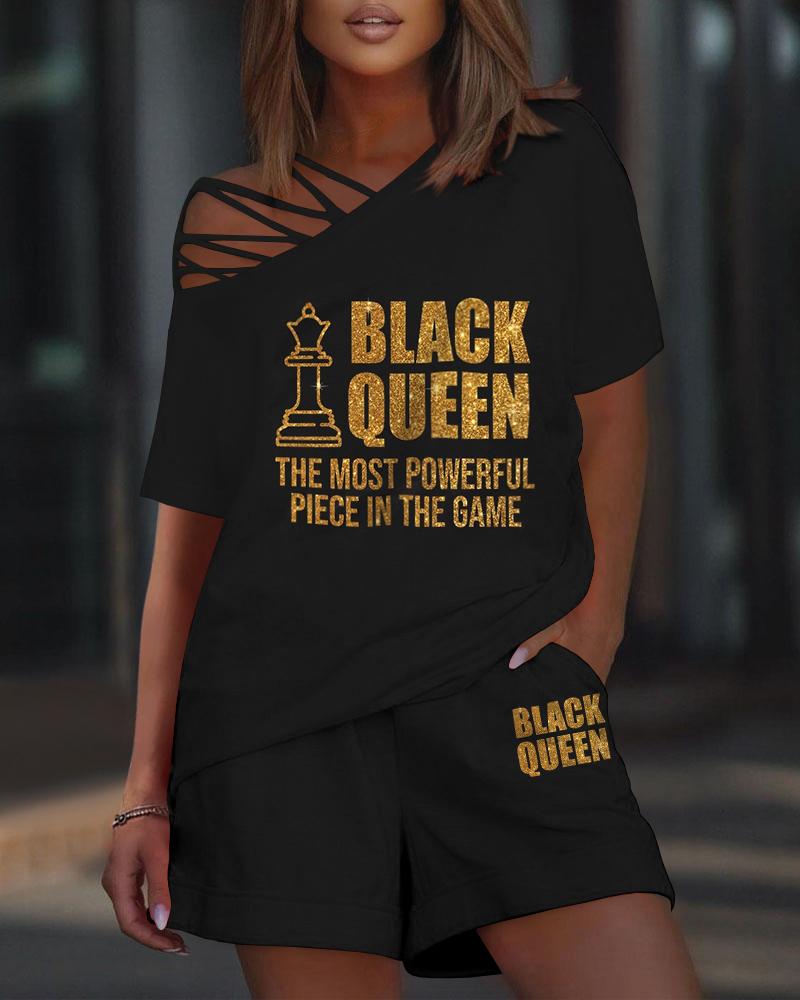 V-Neck Top & Tropical Print Tied Detail Shorts Set