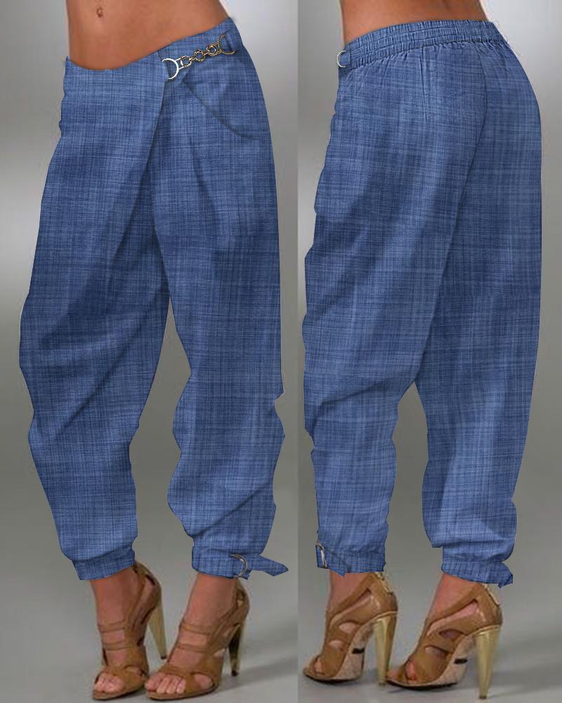 Style:Casual Type:Cuffed Material:100%Polyester Length:Capris Pattern Type:Plain Decoration:Chain,Pocket Fit Type:Regular Occasion:Daily Package Include:1*Pants Fabric Elasticity:Slight Stretch Sheer:No Care Instructions:Machine wash or professional dry clean