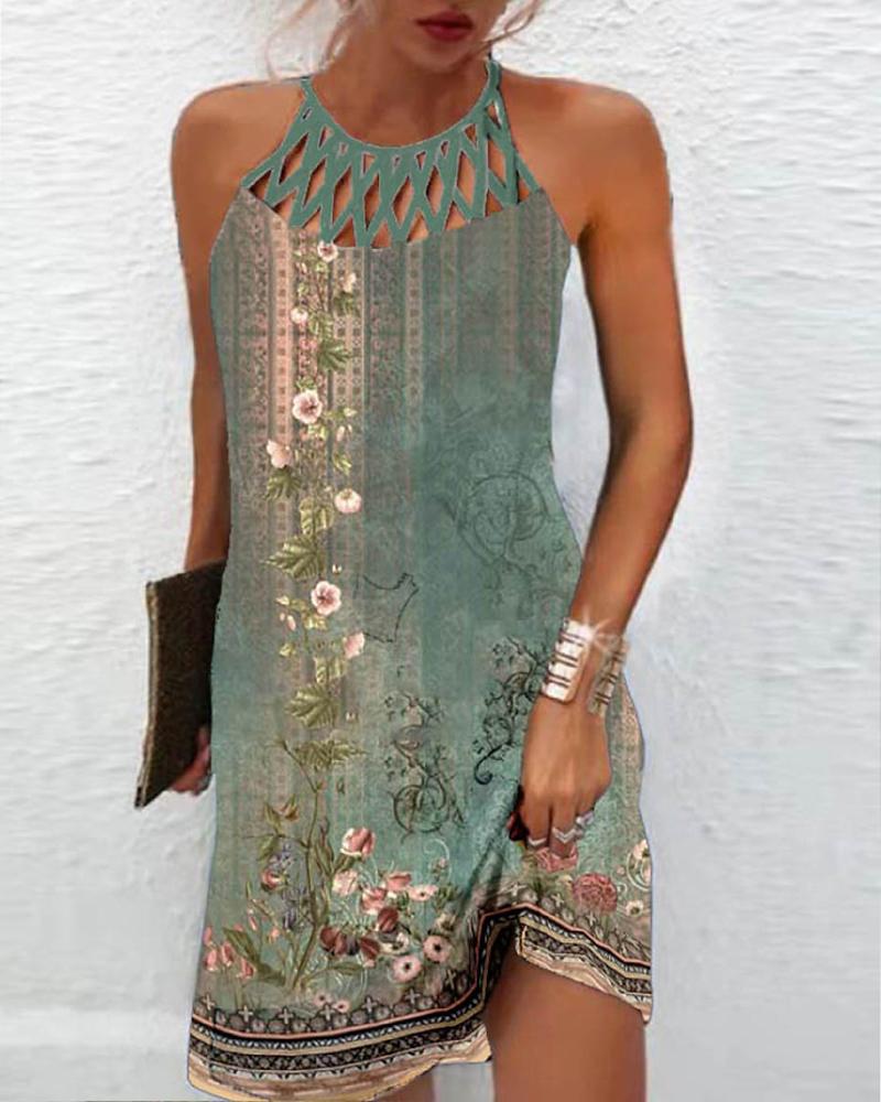 Floral Tribal Print Hollow Out Casual Dress