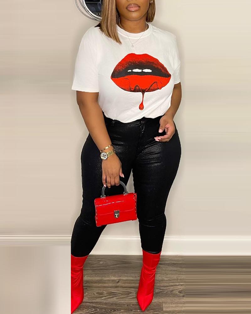 Style:Casual,Chic Type:Pants Sets Material:97%Polyester,3%Spandex Neckline:Round Neck Sleeve Style:Short Sleeve Length:Long Pattern Type:Lip Decoration:Others Fit Type:Regular Occasion:Daily Package Include:Pants Sets Fabric Elasticity:Slight Stretch Sheer:No Care Instructions:Machine wash or professional dry clean