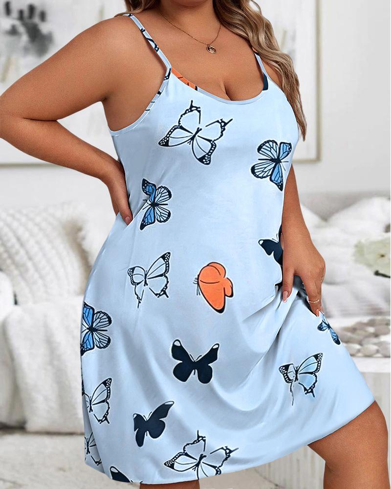Plus Size Butterfly Print Scoop Neck Sleep Dress