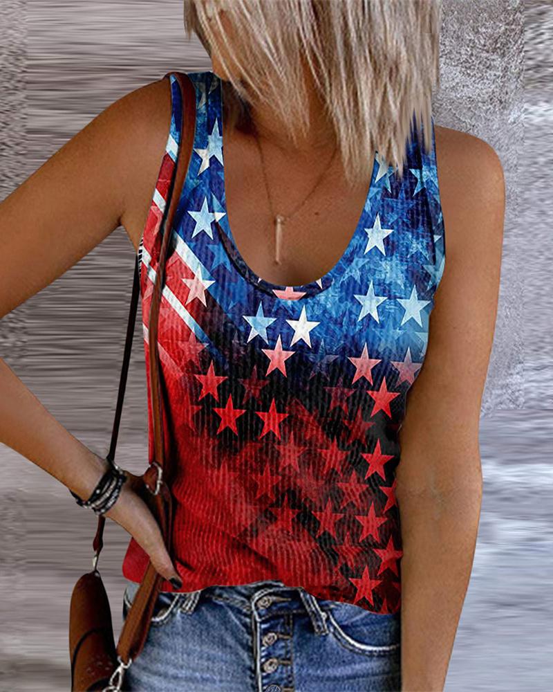 Style:Casual Type:Tank Material:Polyester Neckline:U-Neck Sleeve Style:Sleeveless Length:Regular Pattern Type:Flag,Ombre Decoration:Others Fit Type:Regular Occasion:Daily Package Include:1*Top Fabric Elasticity:Slight Stretch Sheer:No Care Instructions:Machine wash or professional dry clean