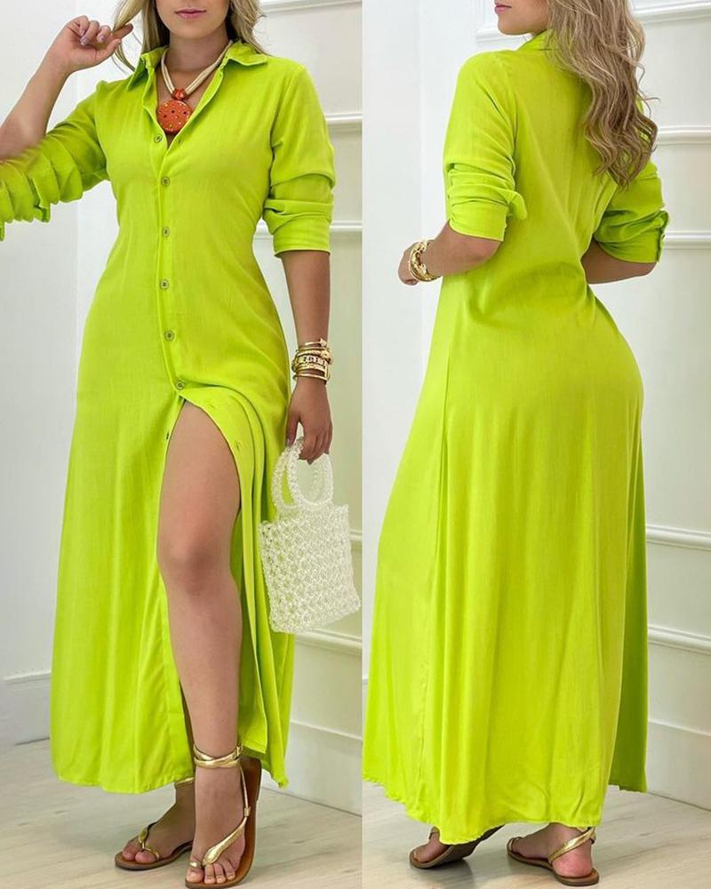 Style:Casual,Chic Type:Shirt Material:100%Polyester Neckline:Turn-down Collar Sleeve Style:Long Sleeve Length:Maxi Pattern Type:Plain Decoration:Button Fit Type:Regular Occasion:Daily Package Include:1* Dress
