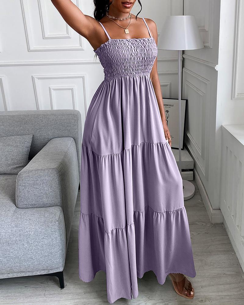 Style:Boho Type:Smock Material:Polyester Neckline:Square Neck Sleeve Style:Sleeveless Length:Maxi Pattern Type:Plain Decoration:Pastel,Ruched Fit Type:Regular Occasion:Daily Package Include:1* Dress Fabric Elasticity:Non-Stretch Sheer:No Care Instructions:Hand wash or dry clean