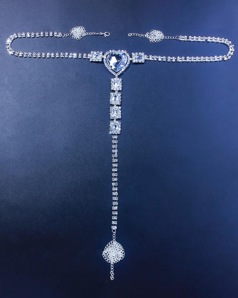 1pc Heart Geometric Pattern Rhinestone Thong Panty Body Chain