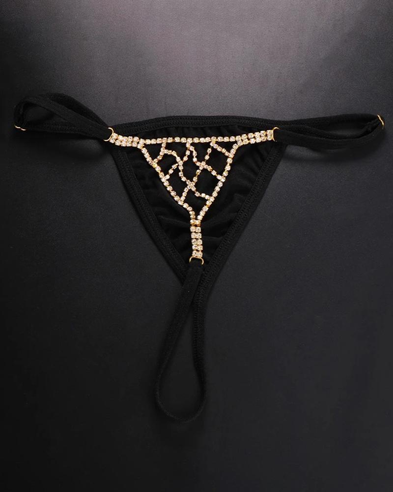 Style:Romantic,Sexy Type:Thong Material:Alloy Pattern Type:Plain Decoration:Rhinestone Occasion:Daily,Home Package Include:1*Thong Panty Sheer:No Care Instructions:Hand wash, do not dry clean
