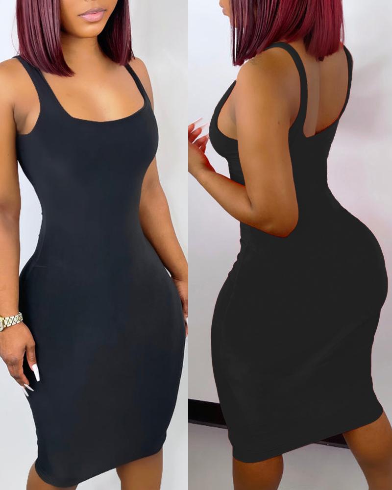 Style:Basics Type:Bodycon Material:Polyester Neckline:U-Neck Sleeve Style:Sleeveless Length:Midi Pattern Type:Plain Decoration:Bright Fit Type:Skinny Occasion:Daily Package Include:1* Dress