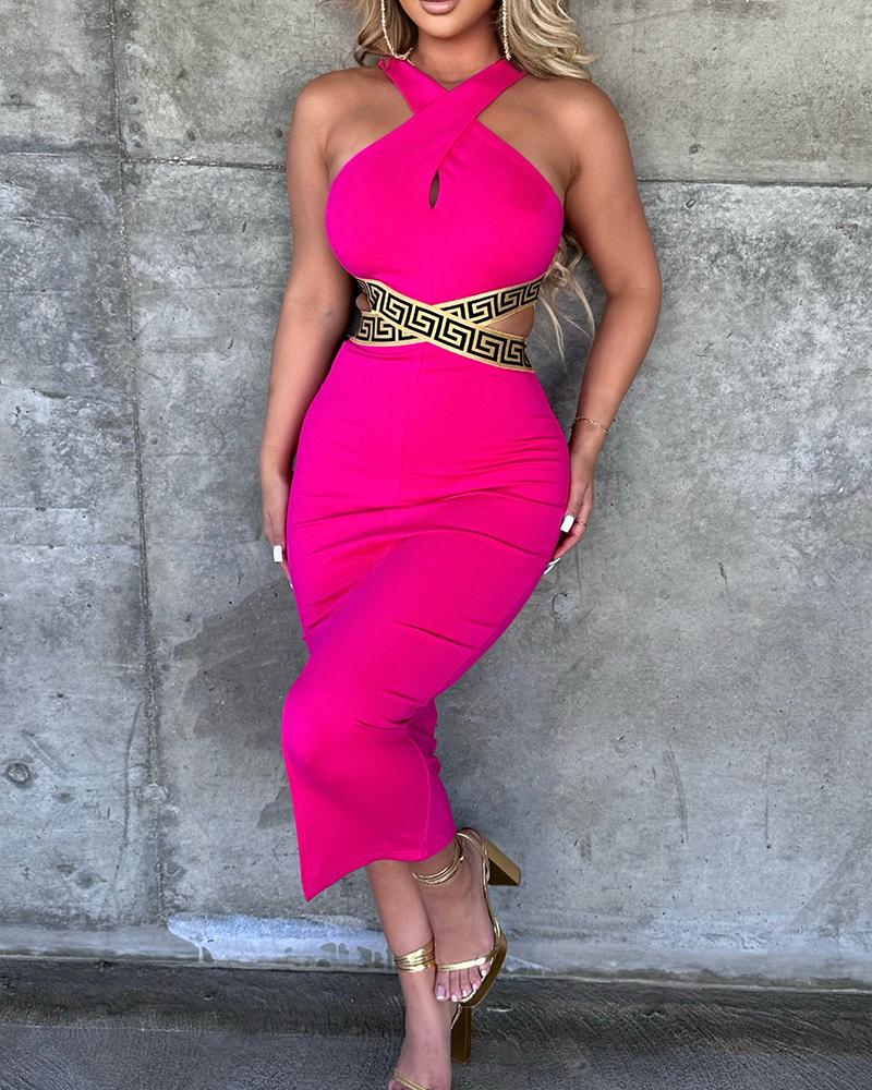 Style:Chic Type:Bodycon Material:95%Polyester,5%Elastane Neckline:Asymmetrical Neck Sleeve Style:Sleeveless Length:Mid-Calf Pattern Type:Geometric Decoration:Cutout Fit Type:Skinny Occasion:Daily Package Include:1*Dress Fabric Elasticity:Non-Stretch Sheer:No Care Instructions:Machine wash or professional dry clean