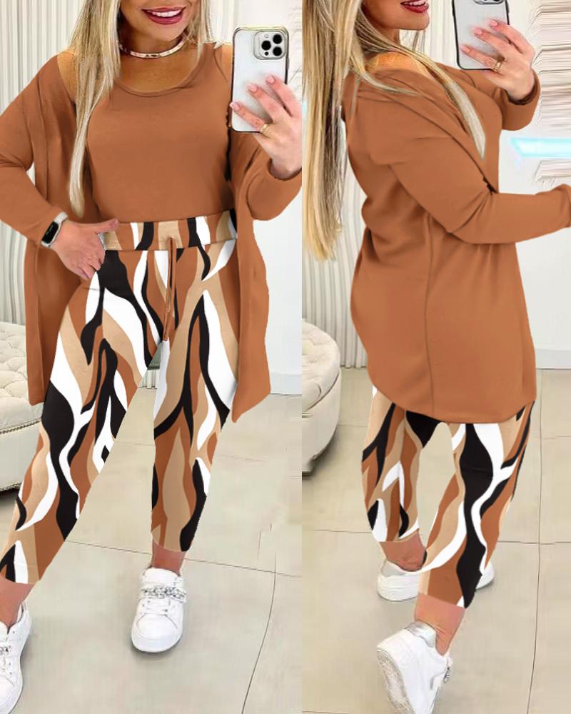 Style:Casual Type:Suit Set Material:94%Polyester,6%Elastane Neckline:Open Front,Round Neck Sleeve Style:Long Sleeve,Sleeveless Length:Long Pattern Type:Abstract Decoration:Drawstring Fit Type:Regular Occasion:Daily Package Include:1*Pants Set(With Coat) Fabric Elasticity:Slight Stretch Sheer:No Care Instructions:Machine wash or professional dry clean