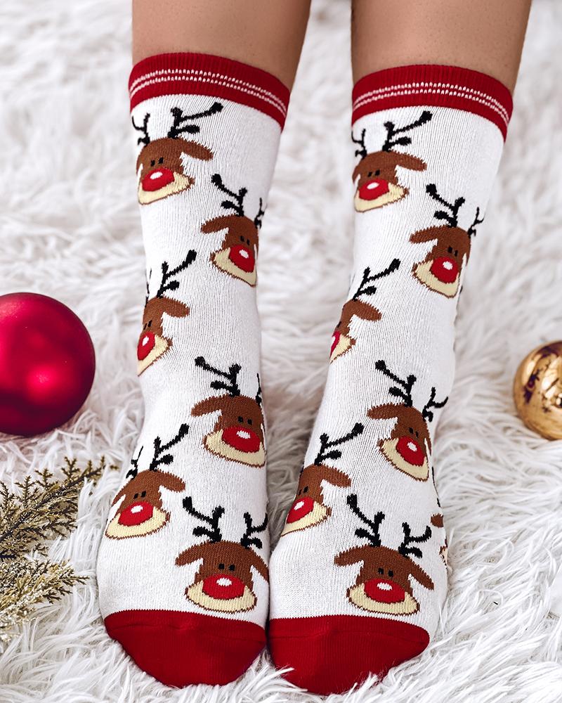 Style:Chic Type:Socks Material:Blends Pattern Type:Cartoon,Christmas,Graphic,Plants Occasion:Christmas Package Include:1Pair Socks