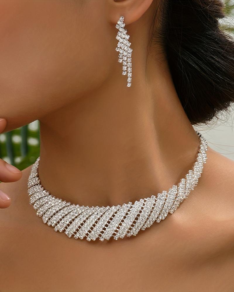 Style:Chic,Glamorous Type:Jewellery Set Material:Rhinestone Pattern Type:Geometric Occasion:Evening,Party,Wedding Guest Package Include:2PCS Jewelry Set