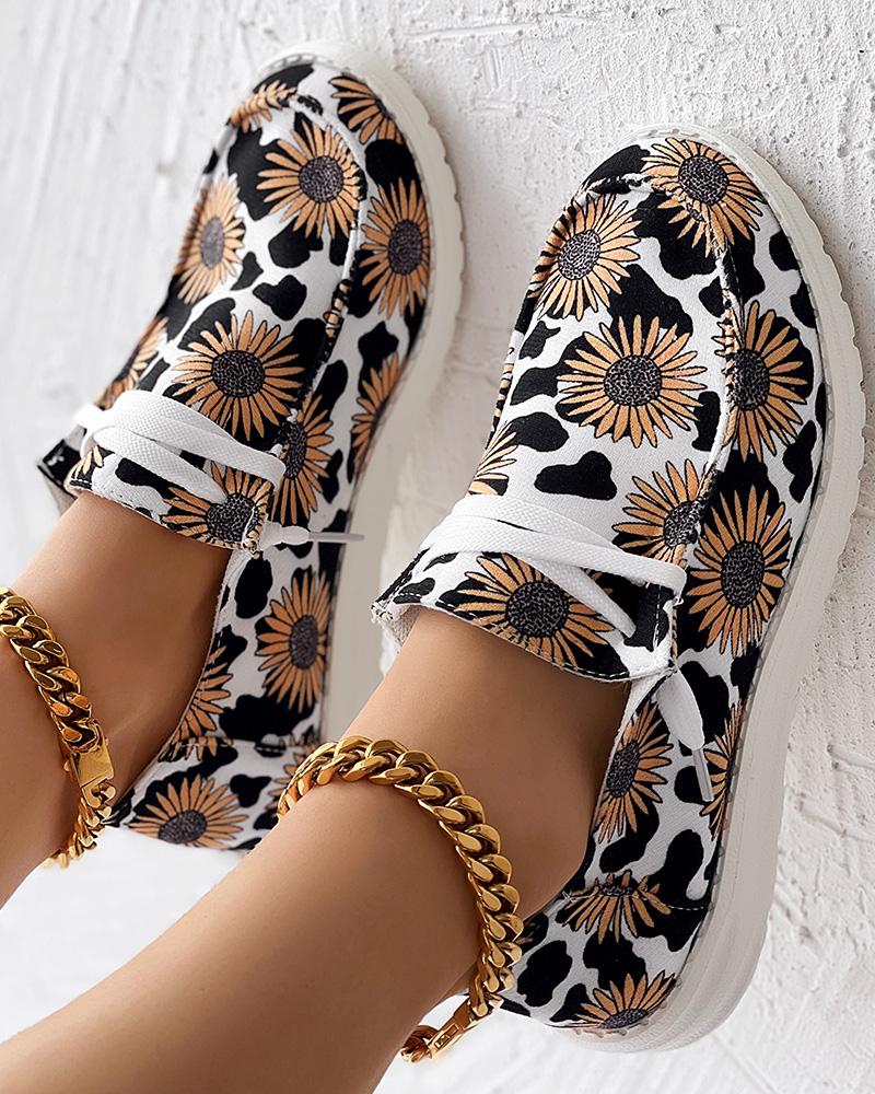 Style:Casual Type:Slip-On Material:Canvas Pattern Type:Animal,Sunflower Occasion:Daily Toe:Round Toe Heel Height:Low Heel Package Include:1*Slip-On