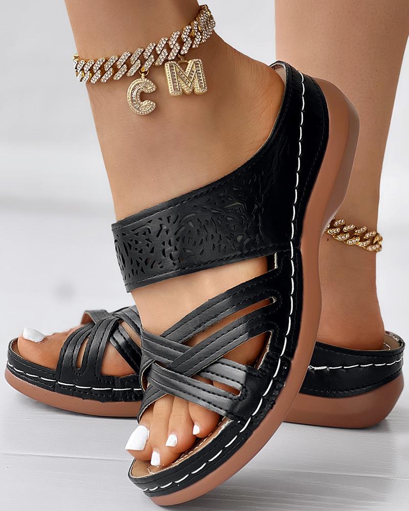 Crisscross Hollow Out Peep Toe Wedge Slippers
