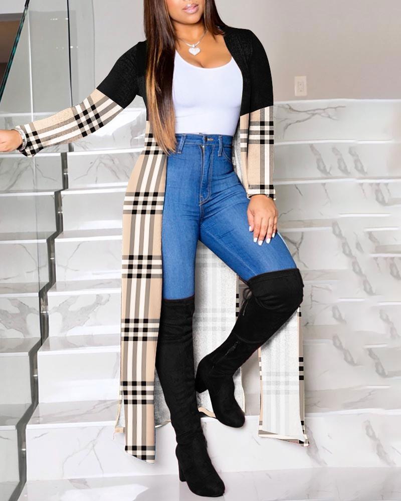 Style:Casual Type:Coat Material:97%Polyester,3%Spandex Neckline:Open Front Sleeve Style:Long Sleeve Length:Long Pattern Type:Plaid Decoration:Slit Fit Type:Regular Occasion:Daily Package Include:1*Coat