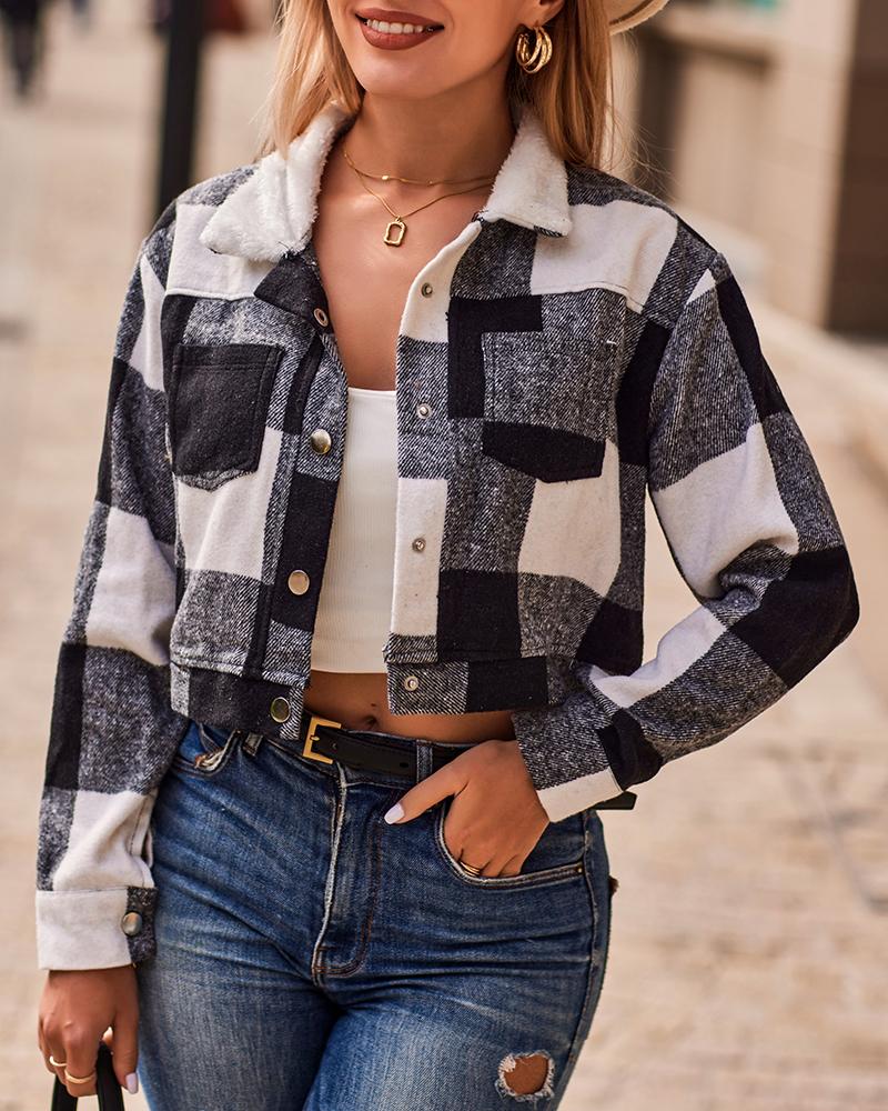 Style:Casual Type:Jacket Material:100%Polyester Neckline:Turn-down Collar Sleeve Style:Long Sleeve Length:Crop Pattern Type:Plaid Decoration:Button,Pocket Fit Type:Regular Occasion:Daily Package Include:1*Jacket
