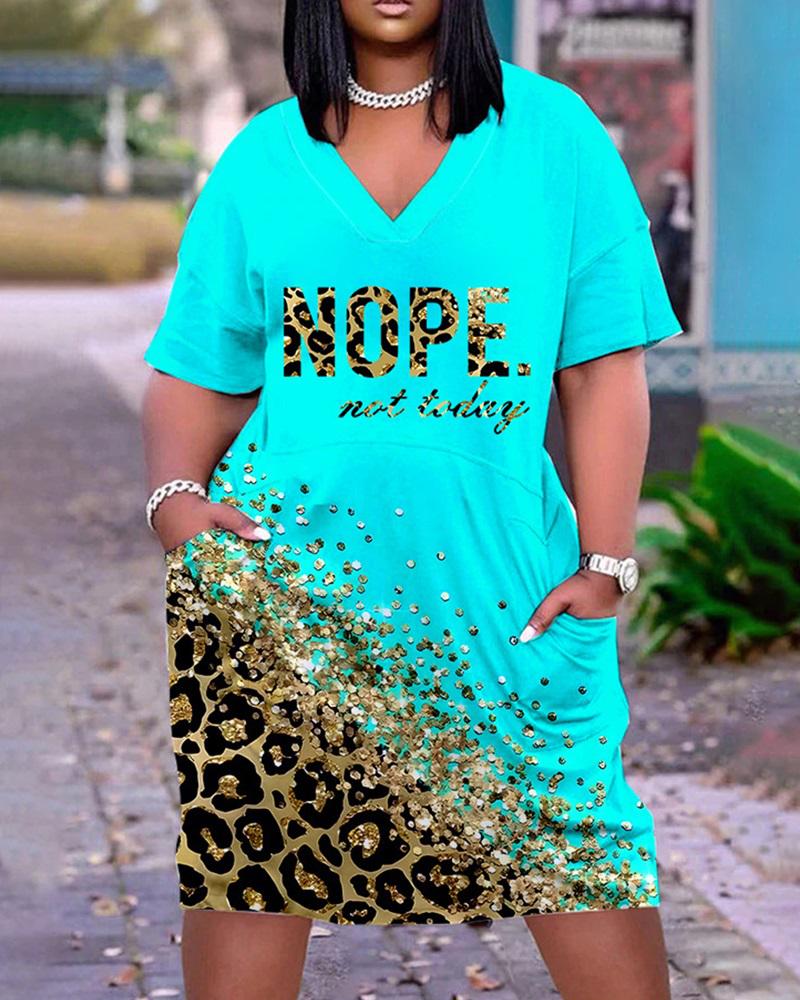 Plus Size Nope Not Today Contrast Leopard Print Casual Dress