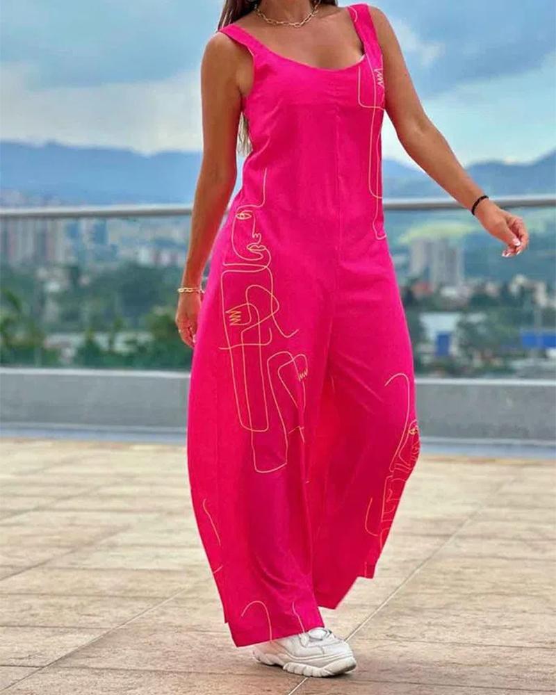 Style:Chic Type:Jumpsuit Material:100%Polyester Neckline:U-Neck Sleeve Style:Thick Strap Length:Long Pattern Type:Figure Decoration:Others Fit Type:Regular Occasion:Daily,Vacation Package Include:1*Jumpsuit Fabric Elasticity:Slight Stretch Sheer:No Care Instructions:Machine wash or professional dry clean