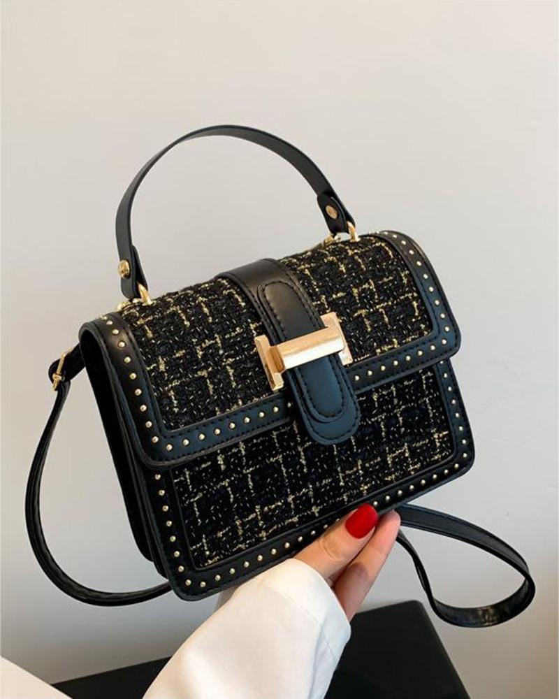Trendy Tweed Studded Crossbody Shoulder Bag