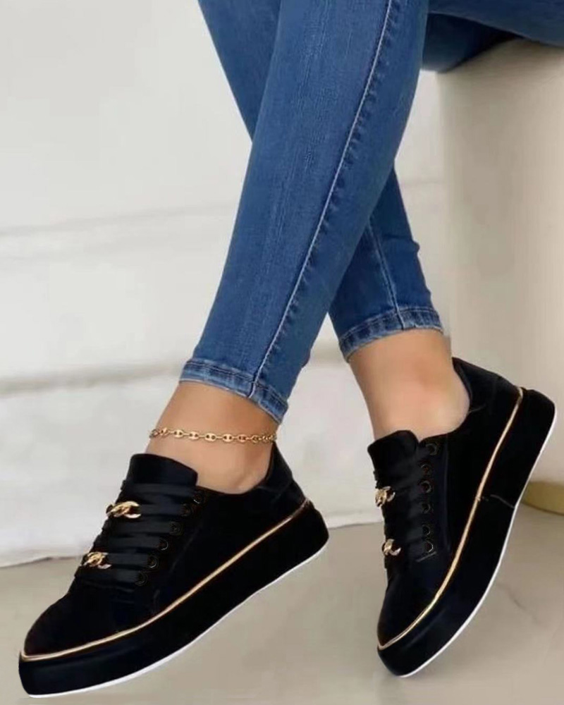 Chain Decor Lace-up Platform Casual Sports Sneakers