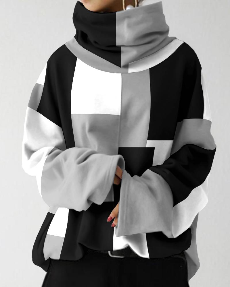 Style:Casual Type:Sweatshirt Material:9%Elastane,9%Elastane Neckline:High Neck Sleeve Style:Long Sleeve Length:Regular Pattern Type:Colorblock,Geometric Fit Type:Regular Occasion:Daily Package Include:1*Sweatshirt Fabric Elasticity:Medium Stretch