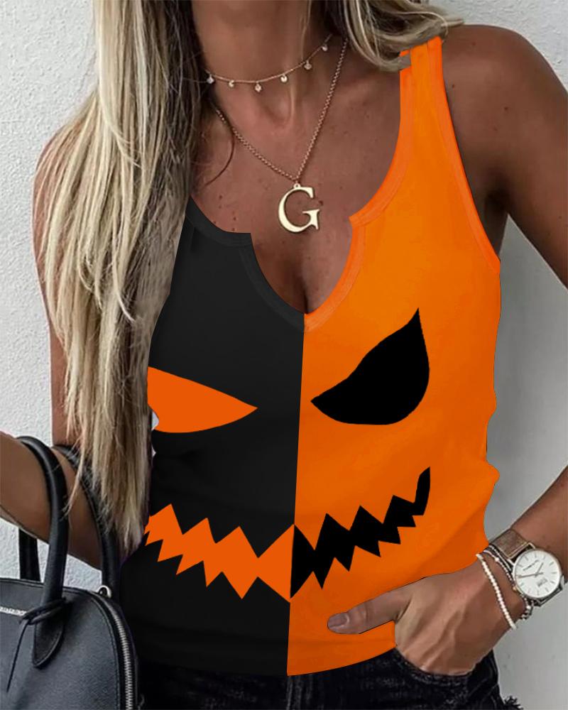 Style:Casual Type:Tank Material:97%Polyester,3%Spandex Neckline:V-Cut Sleeve Style:Sleeveless Length:Regular Pattern Type:Graphic Fit Type:Regular Occasion:Halloween Package Include:1*Top