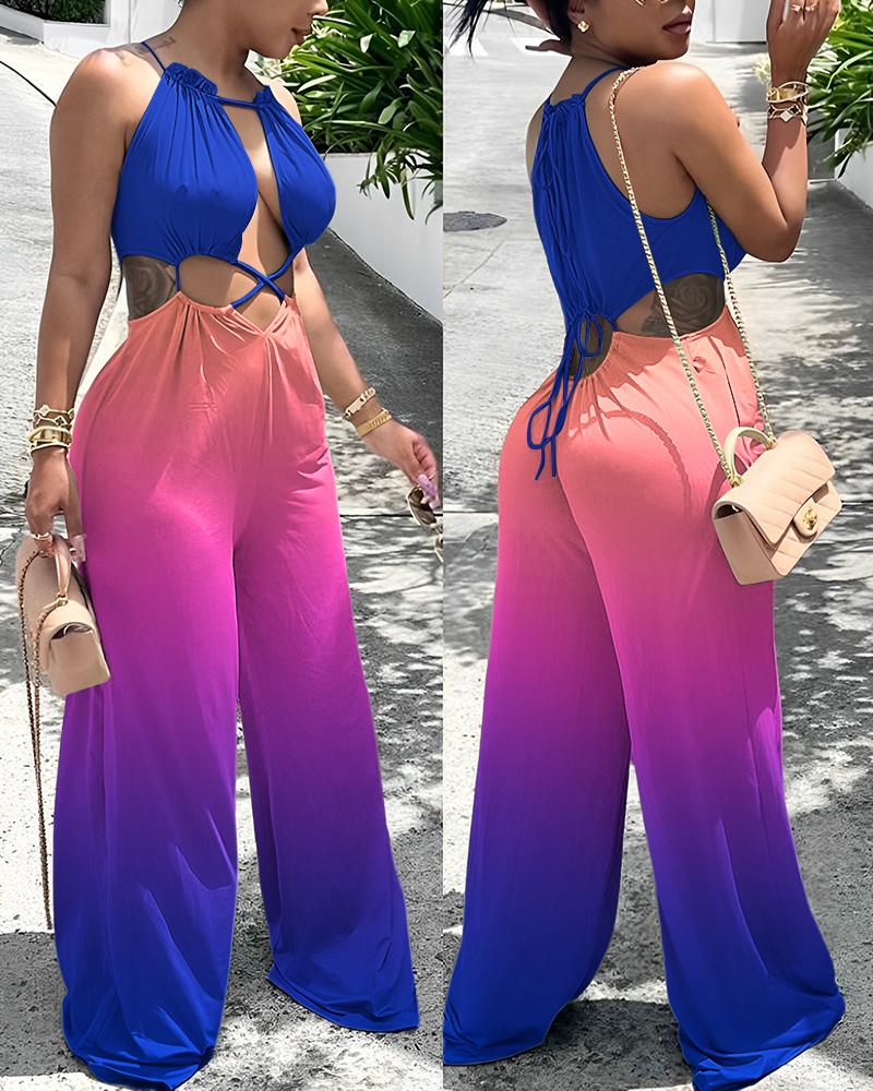 Ombre Lace-up Cutout Wide Leg Jumpsuit