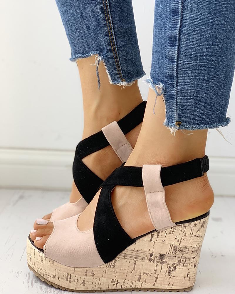 Peep Toe Colorblock Platform Wedge Sandals