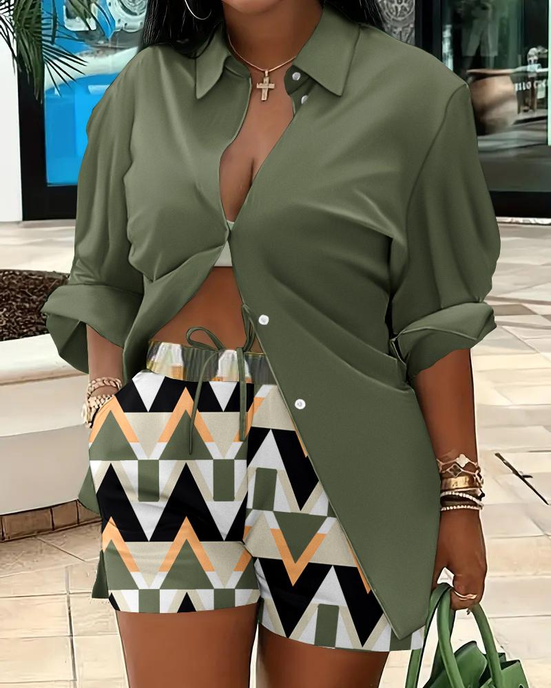 Buttoned Shirt & Geometric Print Shorts Set
