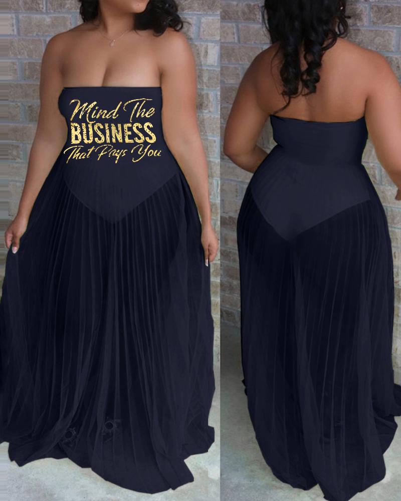 Style:Chic Type:A Line Material:97%Polyester,3%Spandex Neckline:Bandeau Sleeve Style:Sleeveless Length:Maxi Pattern Type:Letter,Slogan Decoration:Ruched Fit Type:Regular Occasion:Daily Package Include:1* Dress