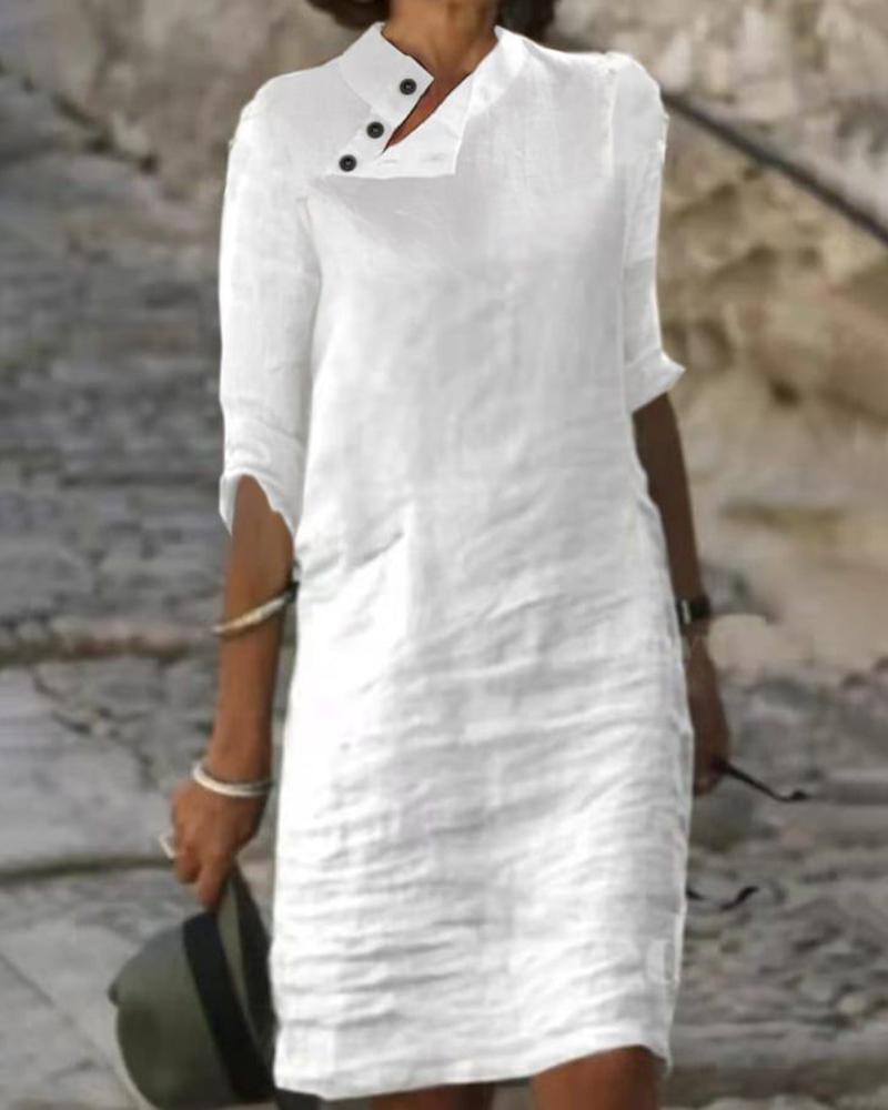 Plain Button Detail Casual Dress