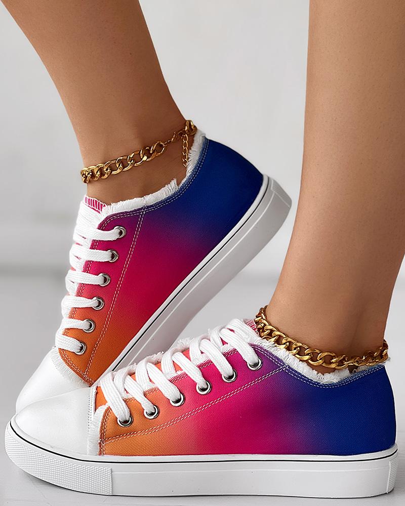 Style:Casual Type:Sneakers Material:Canvas Pattern Type:Ombre Decoration:Lace-up,Raw Hem Occasion:Daily Toe:Round Toe Heel Height:Flat Package Include:1*Sneakers
