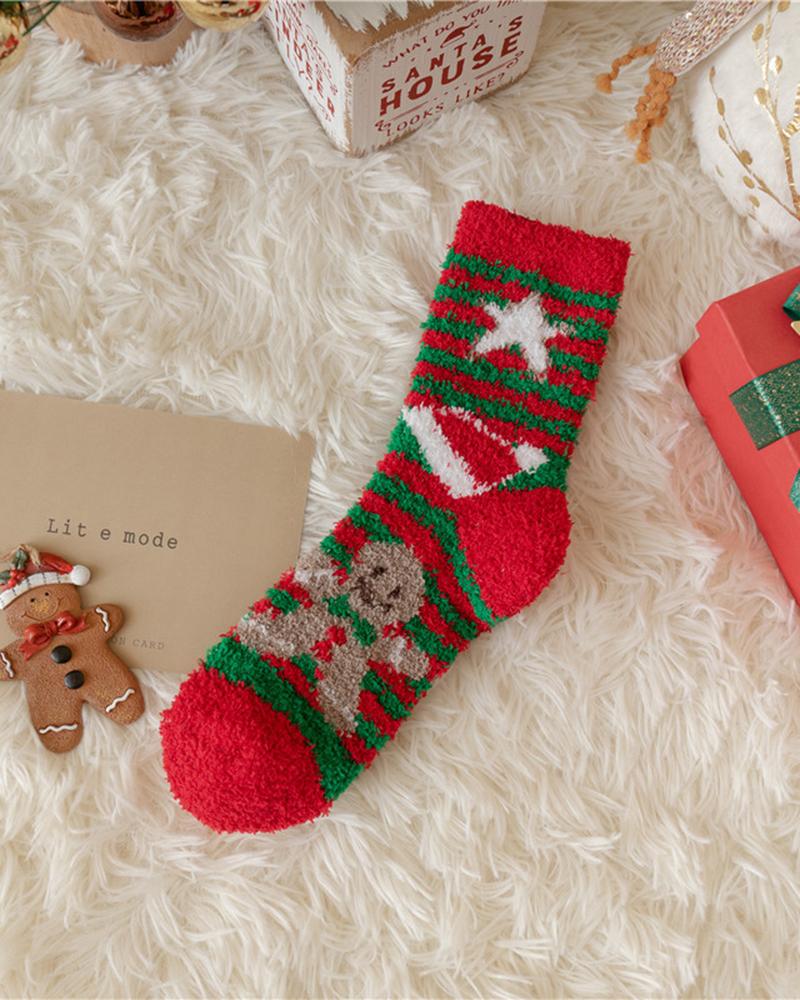 1Pair Christmas Elk Polka Dot Pattern Fuzzy Thermal Socks